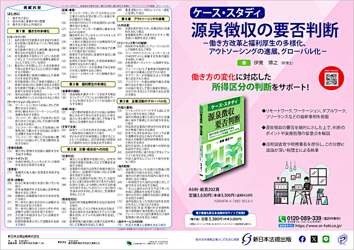新日本法規出版株式会社(所在地:愛知県名古屋市中区、代表取締役社長:河合誠一郎)は、新刊『ケース・スタディ 源泉徴収の要否判断-働き方改革と福利厚生の多様化、アウトソーシングの進展、グローバル化-』を2025年9月9日(火)に発売いたしました!