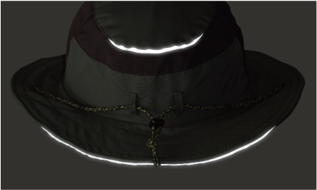 帽子の後頭部、およびツバの後部に車やオートバイなどのライトに反射し、夜間走行時の視認性を高める反射素材を採用しています。