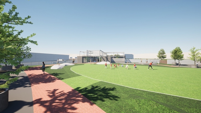 多目的広場:健康促進やコミュニティ形成のための地域に開かれた公園があります。