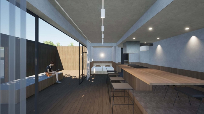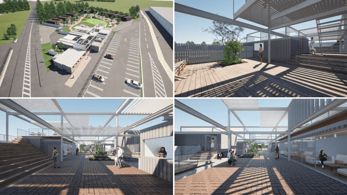 施設概要として、宿泊施設8棟の建設を計画し、各棟にはプライベートサウナを附帯し、飲食棟、共用サウナ棟、多目的コミュニティスペースなども提供予定です。地域の日常に溶け込むよう利用していただく為に、宿泊エリアとエンタメエリアを設け、地域にもひらけたような設計でゾーニングをしています。