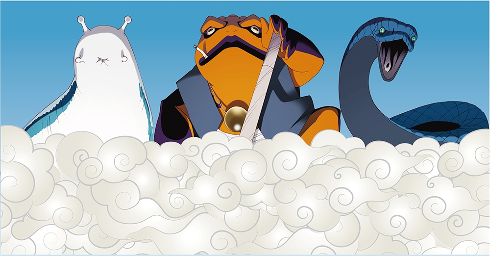 ・口寄せ!新三竦み:ガマ吉・アオダ・カツユと一緒にポーズを決めて記念撮影