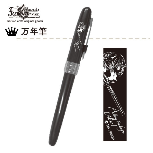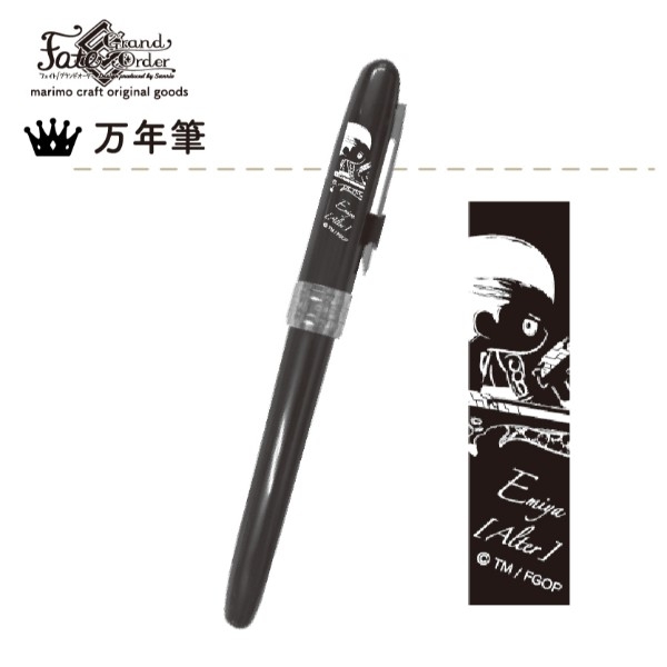 エミヤがデザインされた万年筆です。いつものクールなエミヤとは、ひと味違うタッチがかわいいですよね。オールバック感も再現されていて、ファンには嬉しいですね。ネームロゴもオシャレです。もちろん万年筆としても本格的な書き味ですよ♪FGO好きな友達へのプレゼントにもオススメです。