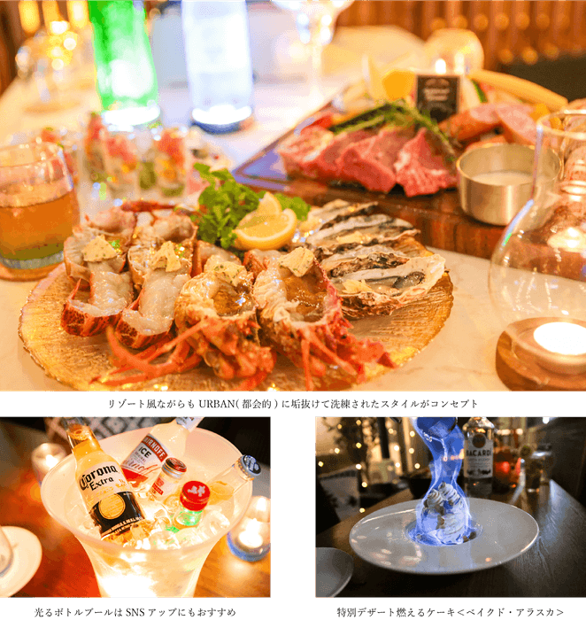 ▼霜降り和牛×伊勢海老に燃えるケーキアラスカ《アーバニスト》