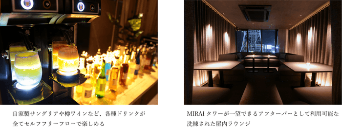 手ぶらで贅沢なビアガーデン&BBQをお楽しみいただいた後は、MIRAIタワー眼前の屋内ラウンジをアフターバーとしてお寛ぎいただけ、特別なひとときを過ごせること間違いなしです。