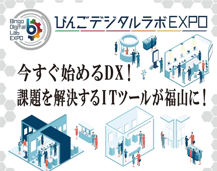 「びんごデジタルラボEXPO」とは、業務効率化や働き方改革などの課題解決に向けたITソリューションの情報収集や導入を促進するための展示会・商談会です。