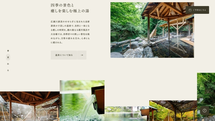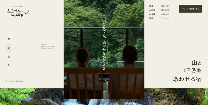 ひとり旅や長期滞在のお客様も多い「ゆづくしSalon一の坊」の過ごし方を四季折々の画像とともに掲載することで、滞在イメージが掴みやすく、スムーズに予約できる公式サイトへと生まれ変わりました。