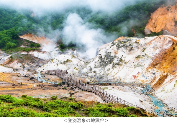 1位は北海道で有名な温泉地が多数あります。登別温泉は泉質の豊富さが魅力。爆裂火口跡である地獄谷が源泉となっていて、湯やガスが噴き出す様子が見られるのも特徴です。