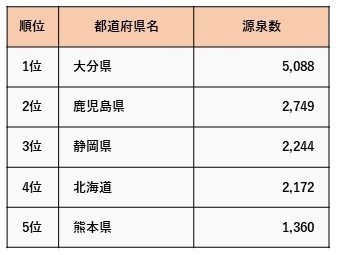 一方で源泉数(未使用の源泉数も含む)となると、大分県が圧倒的に1位となっています。