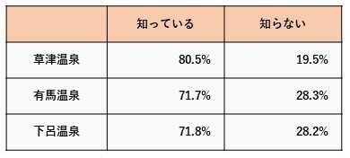 日本三名泉がどの都道府県にあるか知っている割合は?