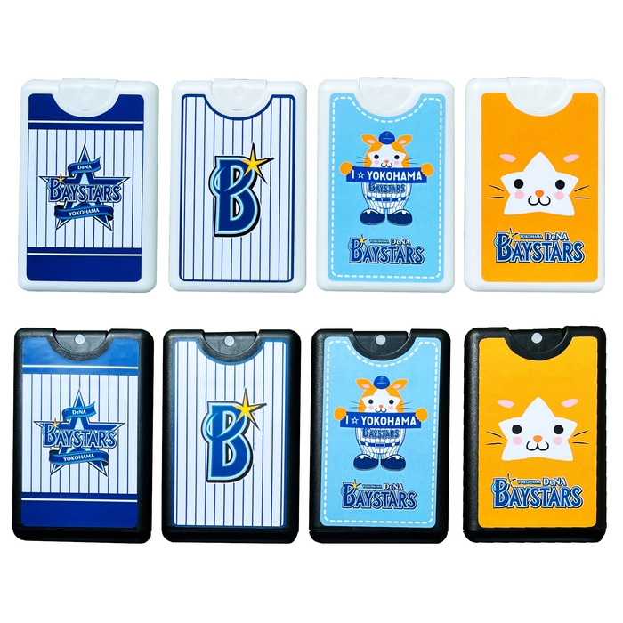 横浜DeNAベイスターズのロゴなどを使用した除菌スプレーのラインナップは全部で8種類。