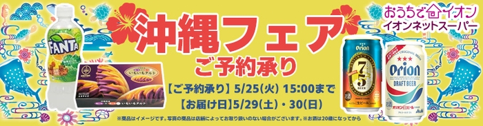 イオンリテール東海カンパニーは、5月28 日(金)~5月30(日)の3日間、愛知・岐阜・三重(イオン日永店は除く)・静岡県内の「イオン」「イオンスタイル」60店舗にて、身近な「イオン」で沖縄を感じていただく「沖縄フェア」(以下、当フェア)を開催します。また5月19日(水)より愛知・岐阜・三重・静岡県内のネットスーパー「おうちでイオン イオンネットスーパー」対象33店舗にて、沖縄フェア対象商品最大約80品目の予約販売を実施します。