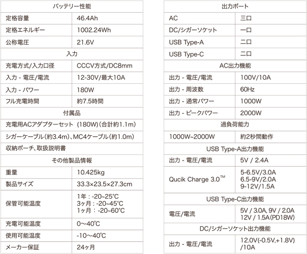 1000Whにパワーアップ!たっぷり大容量・長時間