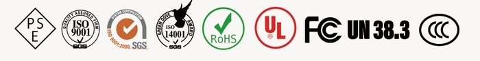 日本規格のPSE検査を始め、ISO9001,UNなど世界基準の様々 な安全規格、品質テストに合格しています。更に、温度検査、衝撃 検査、摩耗検査、落下テストなどを実施し、徹底的に安全性を追 求しています。安全であることにやり過ぎという事はありません。