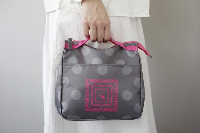 スーパーマーケット「紀ノ国屋」とのコラボ第2弾となる今回の保冷ポーチは、まちの広さが最大のポイント! 大きめのお弁当箱と500㎖のペットボトルを保冷剤と入れても余裕があるくらい、たっぷり入るサイズ感です。持ち手がついているので、ちょっとした買い物にも便利。内側の保冷シートがしなやかなので、たたんでもかさばりません。さらに外ポケットつきで、ウェットティッシュや買い物メモなど小物の収納も。細部まで使い勝手のよさにこだわりました。