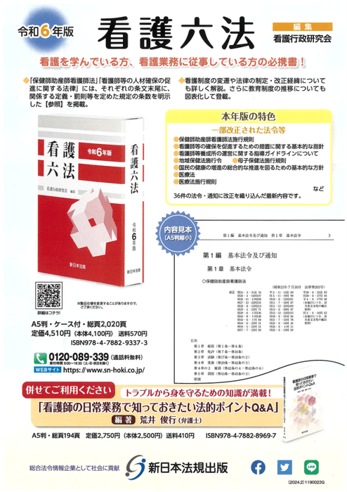 看護を学んでいる方、看護業務に従事している方の必携書!『看護六法 令和6年版』3/15新刊書発売!
