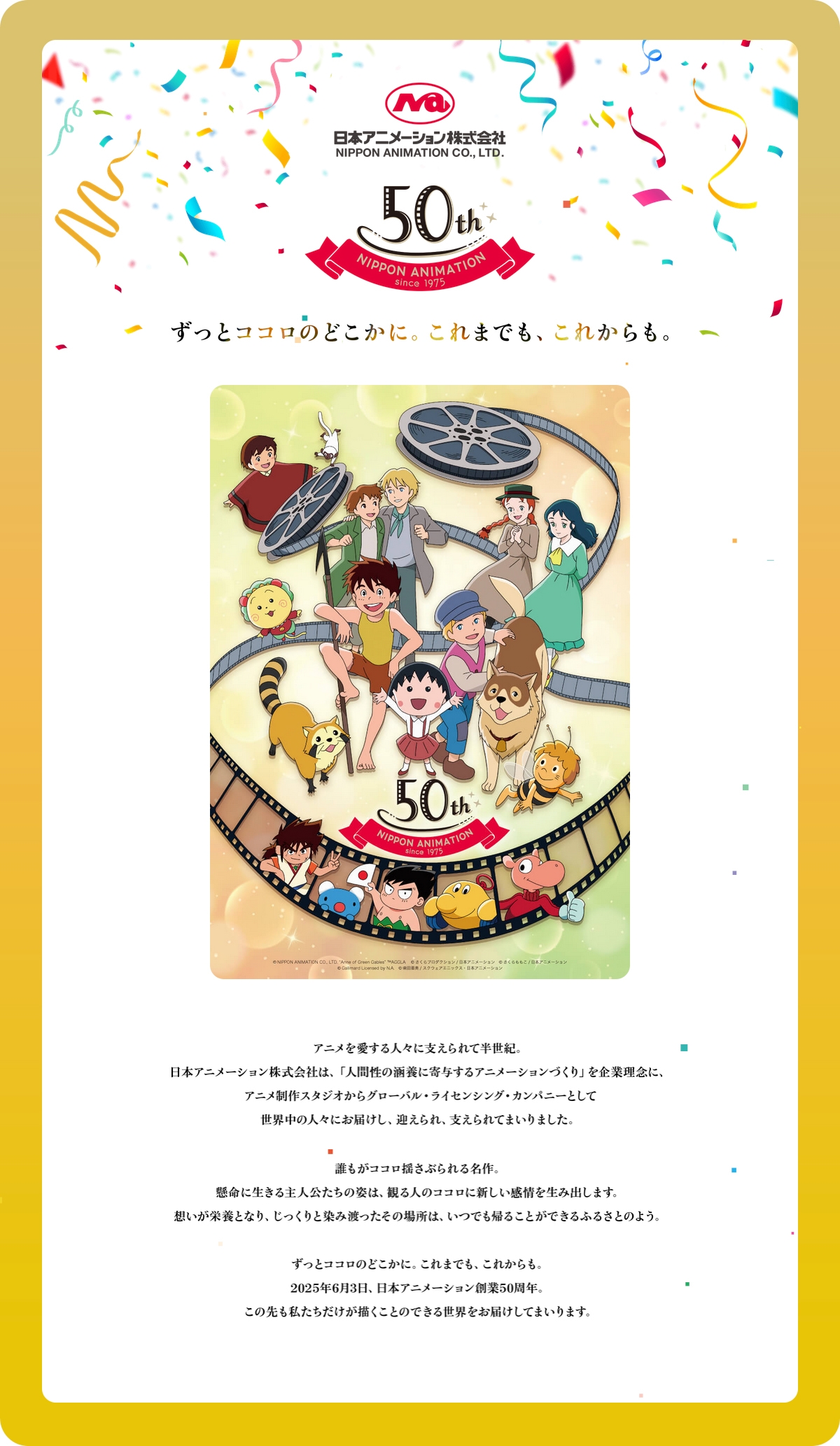 創業50周年記念ページ:https://www.nippon-animation.co.jp/anniversary/