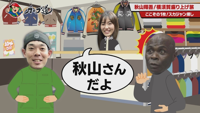 今回は、横須賀の必須アイテム「スカジャン」を探して秋山選手御用達のお店へ。毎年のように訪れる秋山選手への愛が溢れ出します。