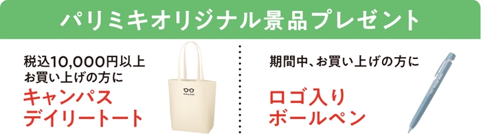 オープンを記念し、税込10,000円以上お買い上げの方に、オリジナルトートバッグを、また、期間中お買い上げの方にオリジナルボールペンをプレゼントいたします!
