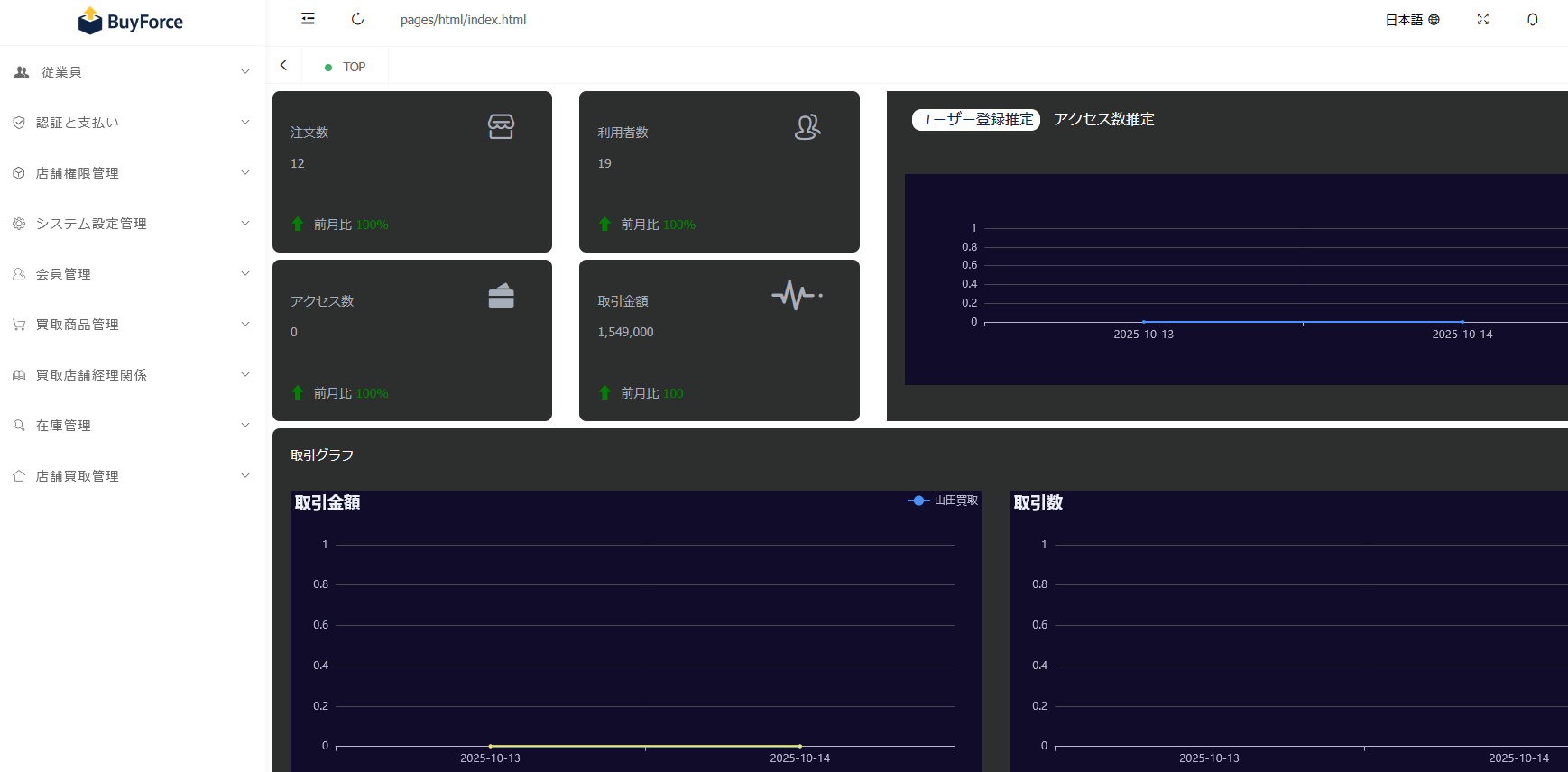 主な機能 :買取管理、在庫・販売管理、注文管理、会員管理、商品登録、