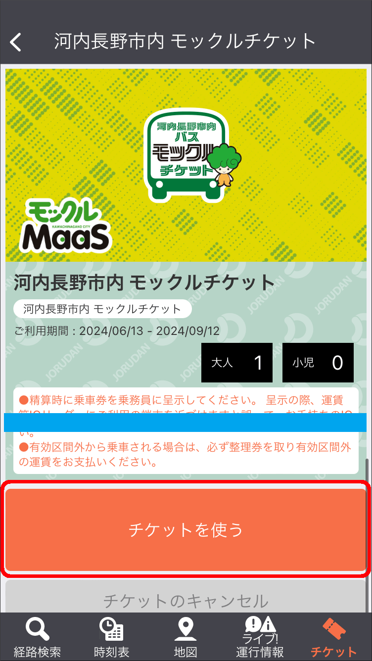 モバイルチケットでより便利でお得に 平日でも休日でも利用可能な、 「河内長野市内 モックルチケット」を販売開始