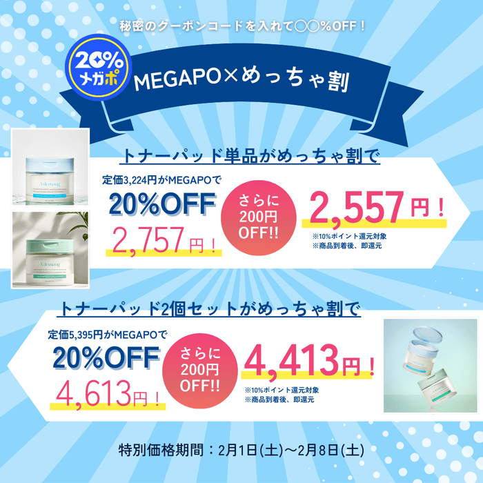 『MEGAPO×めっちゃ割』期間:2月1日(土) ~2月8日(土)