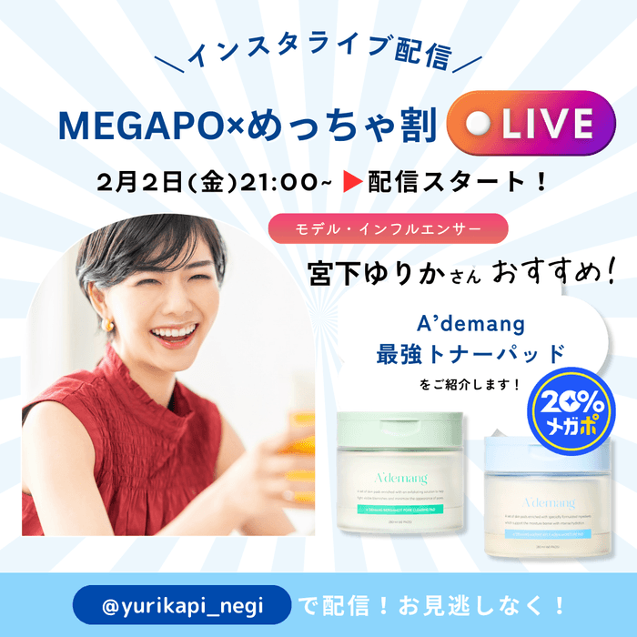 『MEGAPO×めっちゃ割』第二弾に伴い、インフルエンサー・モデルのゆりかぴさんによるインスタライブが決定!