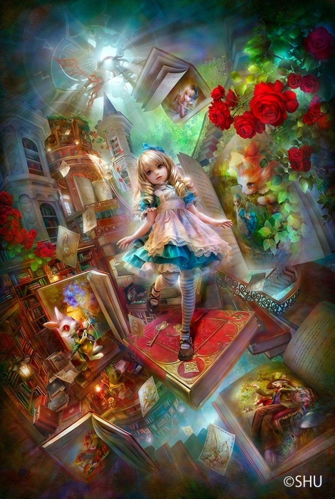 SHU氏の幻想的で壮大な世界観を創り出す独特な色彩感覚と繊細なタッチ、描画技術の高さはもちろん、原作者のルイス・キャロルへの思いや時代背景にまでこだわった作品作りは多くのファンを魅了し続けています。