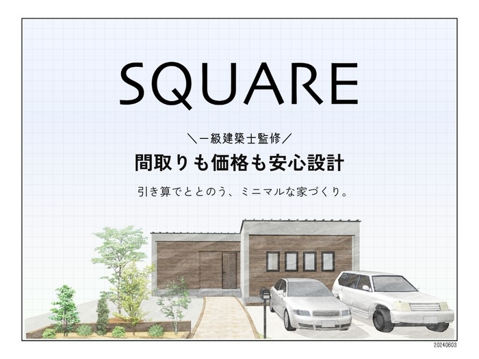 「SQUARE」は「引き算でととのう、ミニマルな家づくり」をコンセプトに、昨今の物価高や不動産価格の上昇、ライフイベントへの備えなどすべての資金を住宅にかけられない方々の選択肢としてつくられました。必要なものや大切なもの、そうではないものを選別し、自分にとって必要なものだけで暮らす新しい家づくりを提案します。