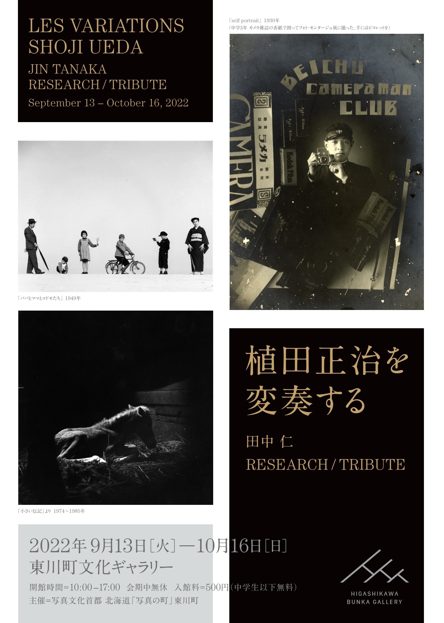 北海道 東川町は、9月13日(火)~ 10月16日(日)までの期間で、東川町文化ギャラリーにて、「植田正治を変奏する 田中 仁 RESEARCH/TRIBUTE」を開催します。日本を代表する写真家・植田正治を20年以上に渡り研究を重ねてきた田中仁氏による、「RESEARCH」と「TRIBUTE」の視点から植田正治作品を紐解く展覧会となります。