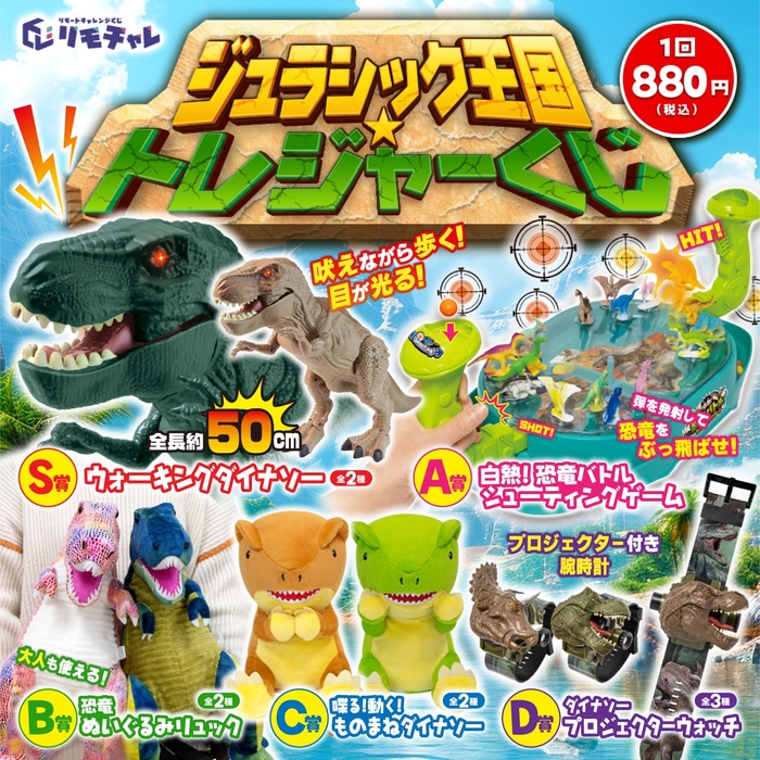 恐竜フィーバー再燃のこの夏、オンラインで“ジュラシック冒険”体験! 動く恐竜フィギュアや限定グッズが当たる「ジュラシック王国トレジャーくじ」、リモチャレで販売開始
