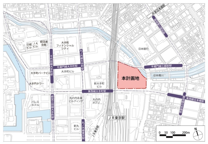 大手町・丸の内・八重洲・日本橋の結節点に位置する、東京駅前の広大な敷地を誇る特別な街区。オフィスワーカー・エリアリピーター・観光客が集まる、東京でも希少な環境です。
