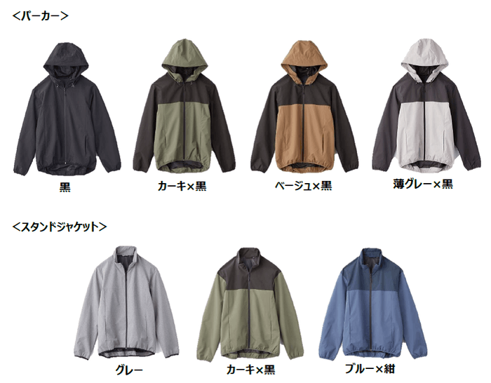 普段使いしやすいスタイリッシュなデザインに加え、袖口・裾口・首元のフィット感にもこだわり、風の侵入を抑えつつ、着心地も追及しています。婦人はパーカータイプで春を感じさせる淡いカラーも含めた7色、紳士はパーカー襟とスタンド襟の2種類が選べて、それぞれ3~4色のバリエーションをご用意いたしました。
