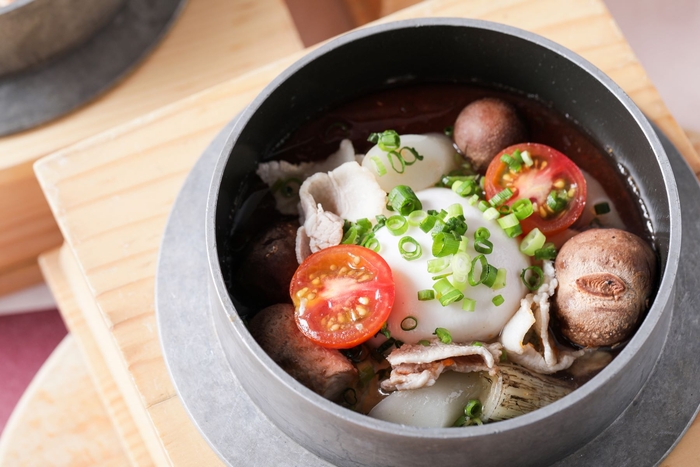 愛知県産金鯱しいたけとプチトマトのスンドゥブチゲ(イタリア×韓国)