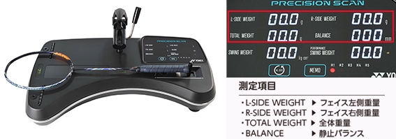 さらに、従来のスウィングウェイト(振った時の重さ)に加え、重量とバランスの測定結果を反映した弊社独自の新指標「パフォーマンススウィングウェイト※2」を測定。プレーヤーの体感にさらに近づけた適正な数値を算出することで、ユーザーに最適なラケットやカスタマイズを提案し、快適なプレーをアシストします。