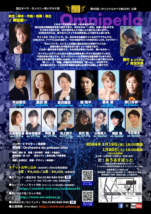 NPO法人 国立オペラ・カンパニー青いサカナ団(代表:神田慶一)主催、歌劇『オムニペトラ』が2024年1月19日 (金) ~2024年1月20日 (土)にあうるすぽっと(東京都豊島区東池袋4-5-2ライズアリ-ナビル2F)にて上演されます。