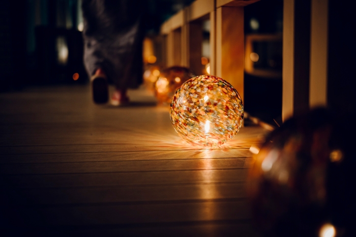 六花酒造さんのお酒、界 津軽での滞在に合わせてグラスを制作しました。既製品のりんごのタンブラーを改良して作ったお猪口、漁業用の浮き球を再利用したぐい吞み、弘前ねぷたをイメージして作られたグラスなど、お酒や滞在に合わせて楽しんでもらえるよう開発しました。「津軽びいどろ」が持つ色のバリエーションの多さや、蝋(ろう)へのこだわりなどは他にはない特徴です。滞在を通して「津軽びいどろ」のあたたかみや四季を感じてもらえたら嬉しいです。