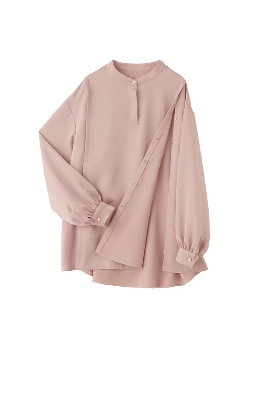 ●上品で光沢感のあるブラウスにも、一見わからないマタニティ機能をプラス。