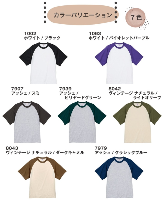 このラグランTシャツは、綿100%(※アッシュ:綿98%、ポリエステル2%)のやわらかな肌ざわりと、抜群の通気性を兼ね備えた一枚。さらっとした着心地で季節を問わず快適に着用できるのが魅力です。