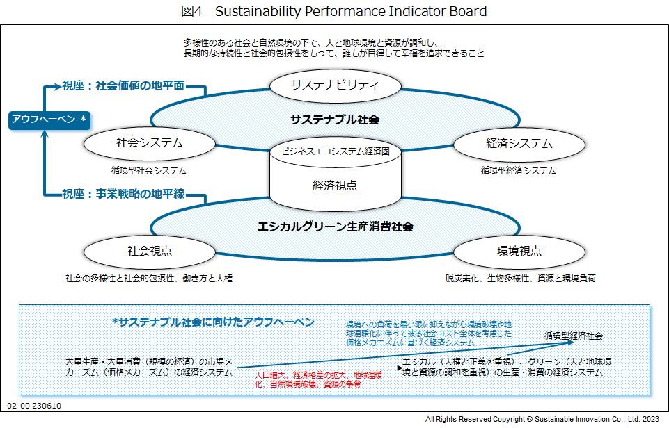 当社では、これまでに「社会問題の全体系(添付図2参照)」「主な社会発展の方向性(現時点で24個のメタタイプ、添付図3参照)」「Sustainability Performance Indicator Board(添付図4参照)」を提唱してきました。これらは「社会を俯瞰して目指していくべき社会の方向性、目標」を明確にして見定めていく上での手掛かりとなるソリューションです。