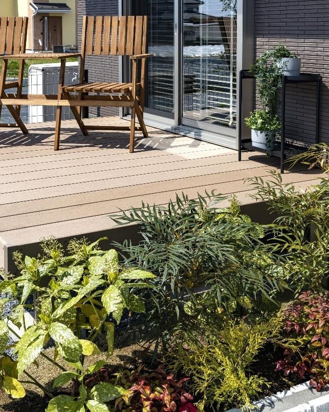 リビングの延長にはウッドデッキがあり、広々と憩いの場として楽しく使えます。