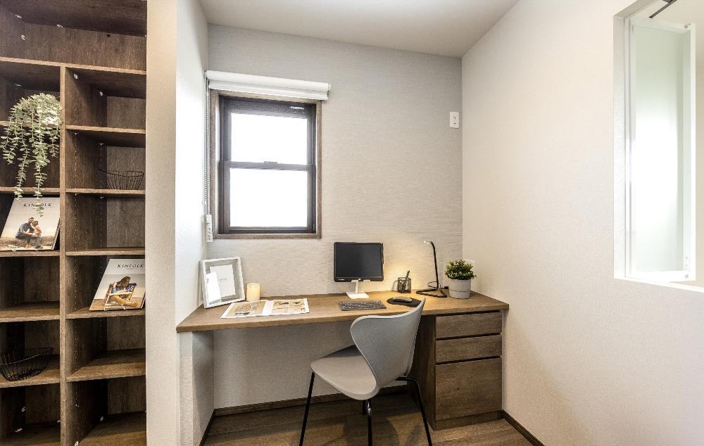 これからの生活様式において欠かせない在宅ワークに対応できるワークスペースを2階にレイアウト。約2.7帖の個室とし、生活音や家族の会話などを気にすることなくオンライン会議ができ、仕事に集中できる快適な在宅ワークを実現できます。