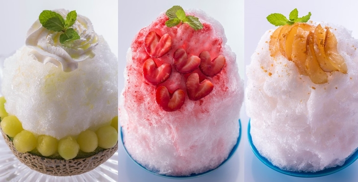 『マスクメロンの器で食べる“ふわふわ”かき氷』や、甘酸っぱく口当たりがよい国産夏いちごを使用した『夏いちごとミックスベリーの“ふわふわ”かき氷』、旬の桃を丸ごと1個コンポートにした『桃のコンポートの“ふわふわ”かき氷』をご用意いたしました。
