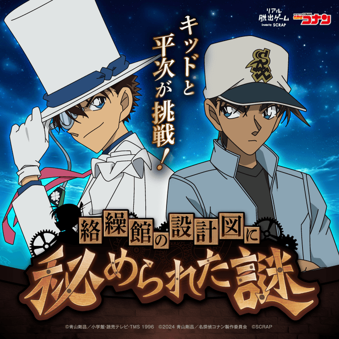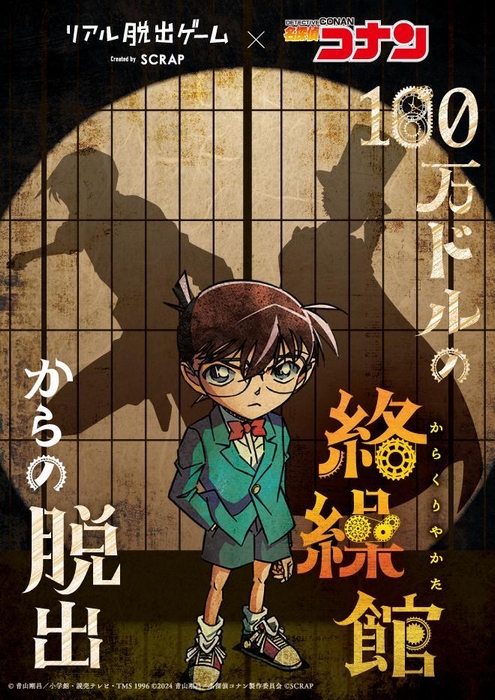 株式会社SCRAP(本社:東京都渋谷区 代表:加藤隆生)は、大人気テレビアニメ「名探偵コナン」とコラボレーションしたリアル脱出ゲームの最新作『100万ドルの絡繰館(からくりやかた)からの脱出』を、2024年7月4日(木)より全国で開催いたします。