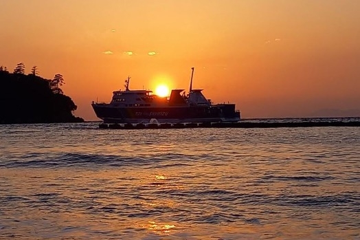 圧巻は夕刻。水平線に沈む夕日が海面をオレンジに染め上げ、運が良ければ夕日を背に土肥港に入港する駿河湾フェリーのシルエットを眺める非日常の入浴を体験いただけます。