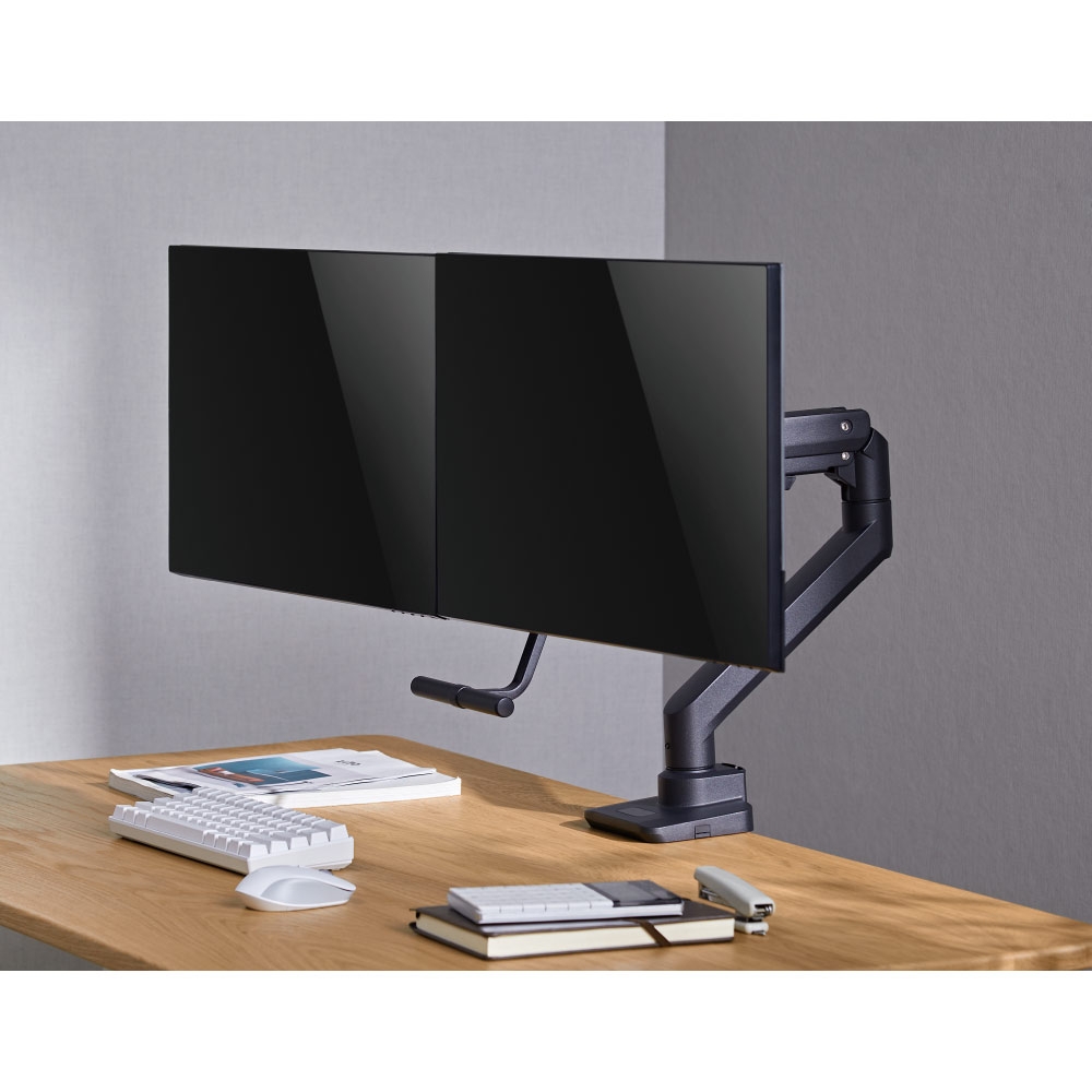 ■ ガススプリングとハンドルでらくらく操作 パソコン工房SELECTION『2画面モニターアーム』