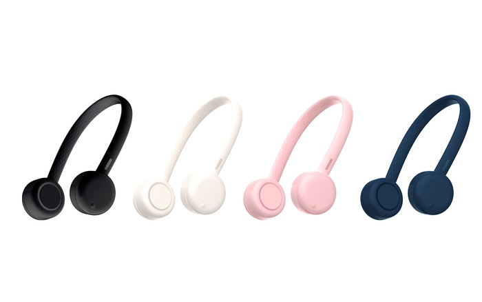 今年から新色ベーシックブラックをシリーズに追加し、全4色を取り揃えました。マカロンのようにキュートな丸形のツインヘッドと、自由自在に形状を変えられるネックバンドが特徴的な首かけ扇風機です。ヘッド部分には羽根をなくし、従来の首かけ扇風機の懸念点だった髪の巻き込みを解消し、デザイン性だけでなく安全性にも配慮しました。