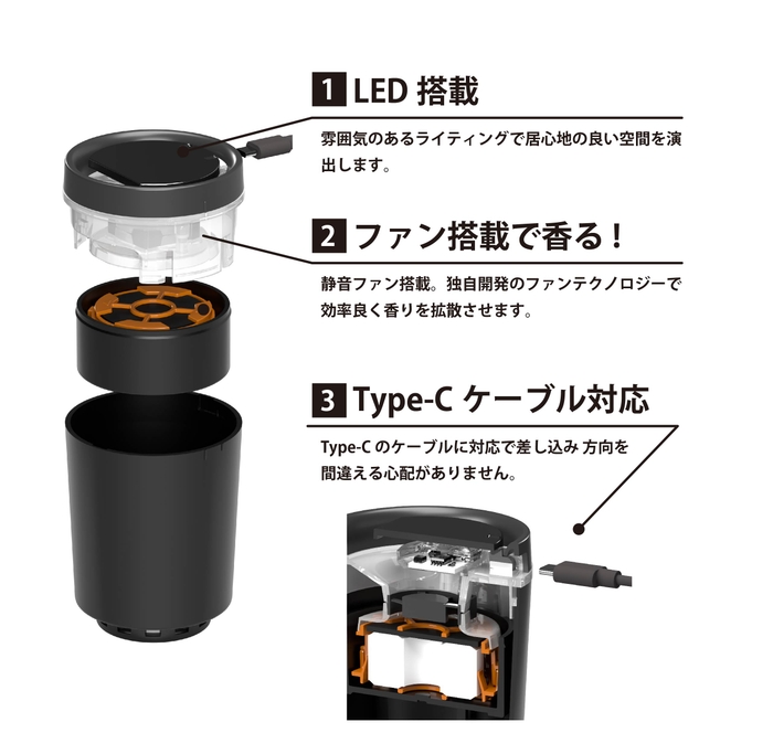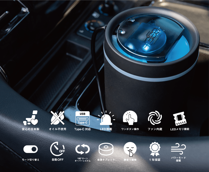 POINT1:車内で香りをより効率良く拡散させるファン式芳香ディフューザー