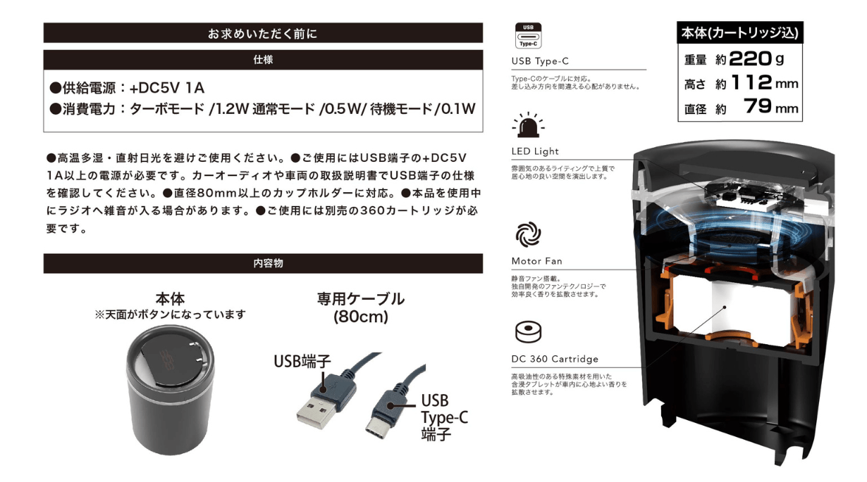 独自開発のファンテクノロジーでエンジン始動と同時に車内に香りを拡散。ファン式芳香ディフューザー「DC360 DIFFUSER」がMakuakeにて先行販売開始!