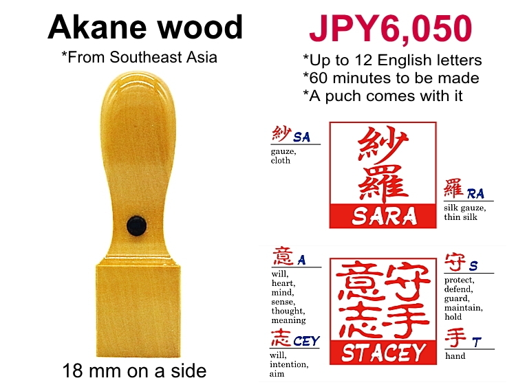 漢字とアルファベットが彫られたハンコが人気