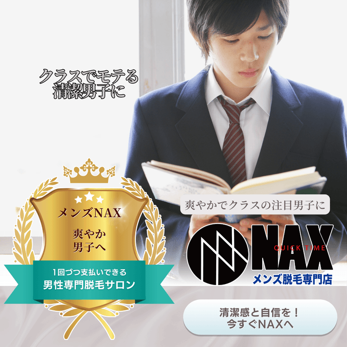 メンズNAXは、初めて脱毛に挑戦する学生にも通いやすい男性専門脱毛サロンです。